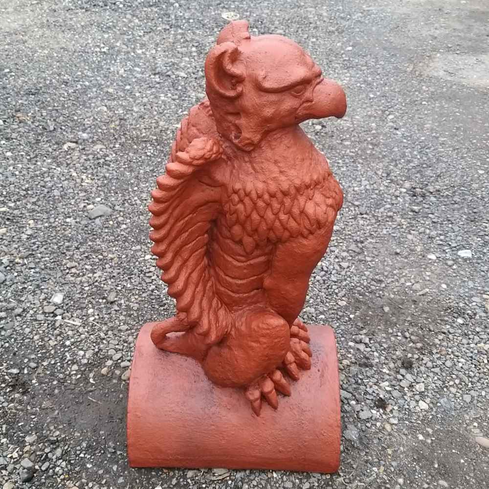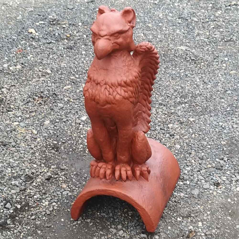 Installing the griffin: The griffin can be installed anywhere on the roof along the ridge line but typically they are installed on the end of a gable or hip end. If there are existing ridge tiles on the roof a ridge tile can be removed and the finial can be fitted in place with mortar to bed them in