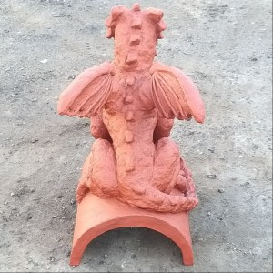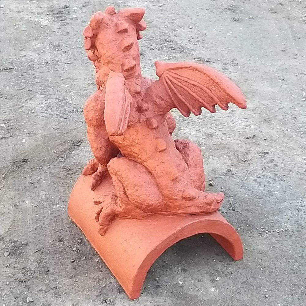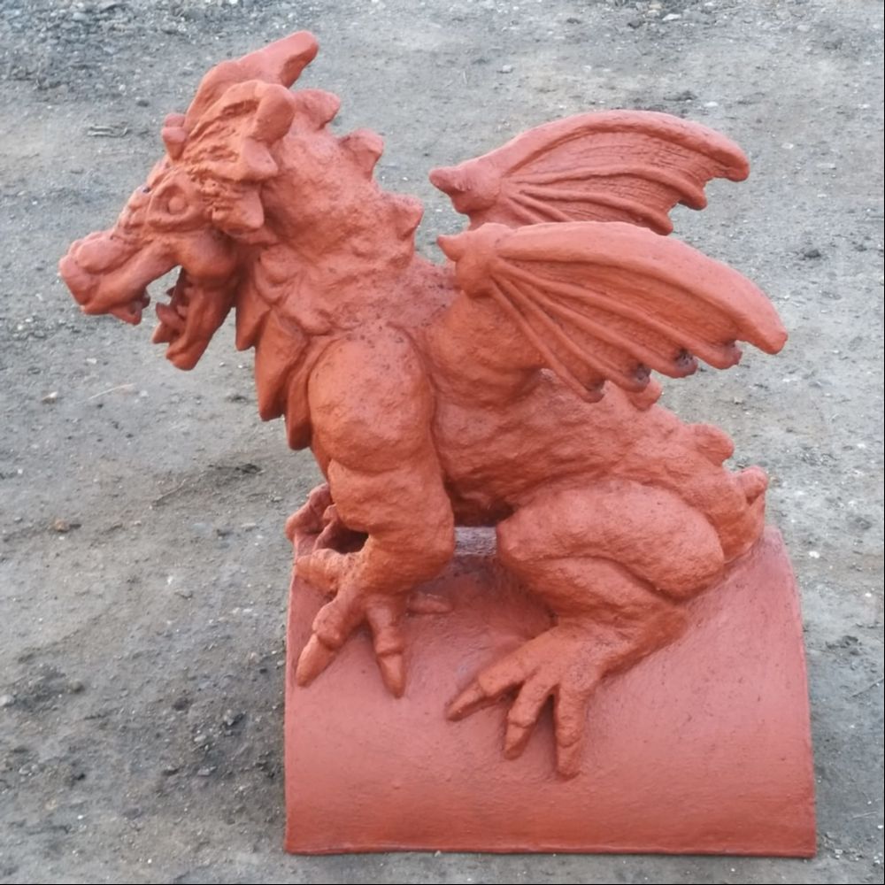 The dragon finials fierce head, with defined facial ridges and a sharp, commanding expression, gives it a watchful and protective aura. The tail gracefully coils around the base, completing the dynamic design. Standing 460mm tall and weighing 19.5kg, the old English dragon is an imposing presence that complements a wide range of architectural styles. Its terracotta finish adds a classic warmth, making it perfect for new homes, period buildings, or restoration projects.